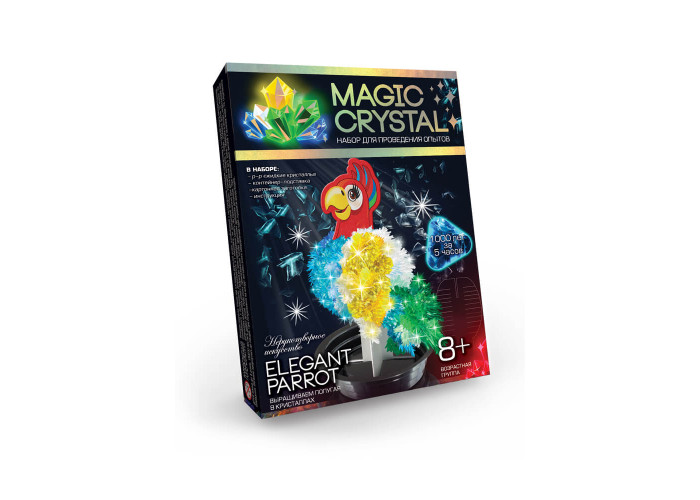 Набір для проведення дослідів "MAGIC CRYSTAL" Елегантний попугай. Вирощування кристалів - дуже цікаве заняття, причому займатися ним можуть не тільки хіміки і фізики, а й звичайні школярі, і навіть дорослі. Зрозуміло такі досліди треба проводити тільки під наглядом дорослих і тільки з безпечними речовинами. У природних умовах такі кристали ростуть не один рік і навіть не одну сотню років, а и вас є можливість виростити це чудо протягом декількох годин.