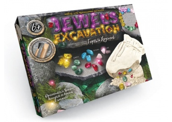Набір для творчості JEWELS EXCAVATION це комплект для юних дослідників-археологів, послідовників Індіани Джонса і Шлімана. У коробці знаходиться пласт скам'янілої земної породи з справжніми різнокольоровими каменями, а також археологічний набір інструментів, необхідних для проведення розкопок. Інструкція, допоможе правильно провести «розкопки» але і в цікавій ігровій формі повідає про деякі історичні факти. За результатами розкопок можна зібрати гарний і оригінальний браслет.