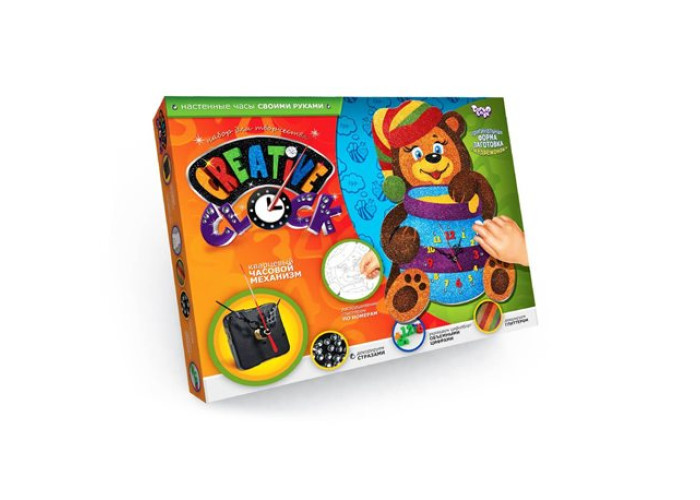 Розфарбуйте заготовку для годинника гліттером за номерами, прикрашайте стразами як підкаже фантазія! Прикрашений об'ємними цифрами циферблат і кварцовий механізм з детальною інструкцією дозволять створити оригінальний годинник, який прикрасить інтер'єр.