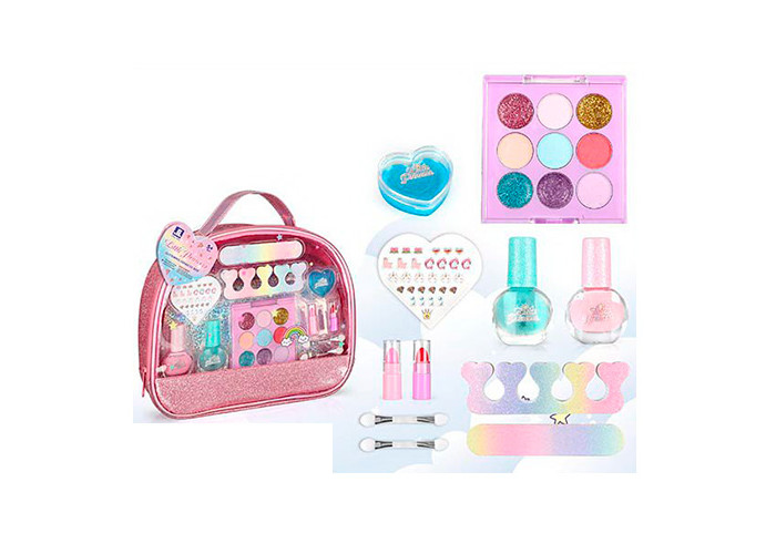 Дитяча косметика в зручній рожевої сумочки-косметички з зображенням маленької русалки - це заповітна мрія кожної дівчинки. Приголомшливий набір включає все необхідне для створення прекрасного образу. Всі складові повністю безпечні для здоров'я і не викликають роздратування чутливої дитячої шкіри навіть при тривалому контакті. Набір допоможе створити чарівний макіяж і при цьому виконати комплексний догляд за шкірою. Яскраві тіні підкреслять форму очей, роблячи риси більш виразними. А щоб надати губам сяйва, захищаючи при цьому їх від обвітрювання допоможуть блиски для губ і помади. Доповненням шикарного способу стане акуратний манікюр. В набір входить пилка для нігтів, роздільник для пальців, 2 відтінки лаків та наклейки.