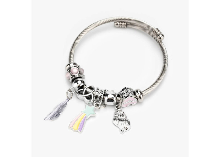 Браслет Pandora з шармами хорошої якості. Кастомізований браслет-манжета не залишиться в стороні від уваги вашої дівчинки, цей браслет підійде для будь-якого заходу, від Дня народження до відвідування школи. Він придаватиме незрівнянго шарму ручці.