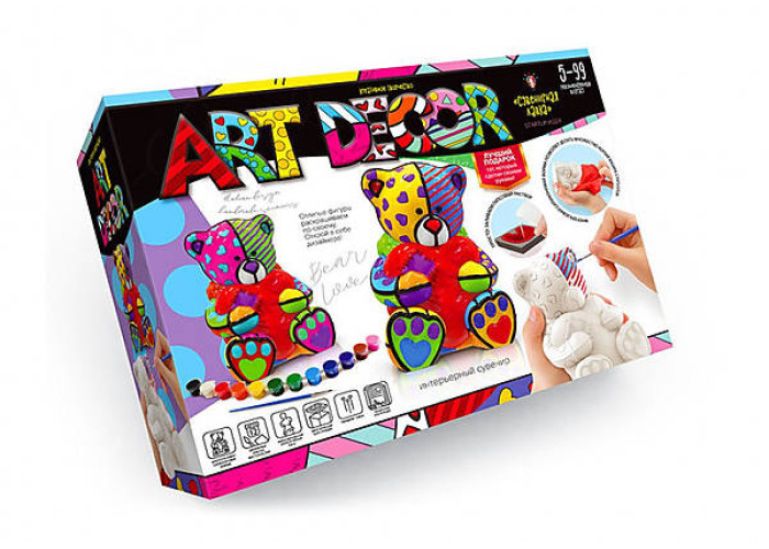 Art Decor - це набір для творчості, який допомагає майстерно опанувати техніку гіпсового лиття та 3D-розписи. Ви зможете створювати своїми руками унікальні інтер'єрні подарунки. У наборі є все потрібне.