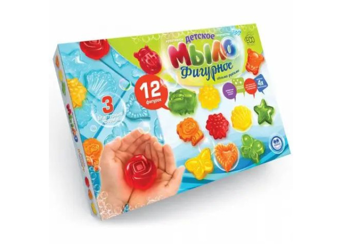 12 фігур в 1 наборі! Миловаріння - це захоплюючий процес і прекрасне спільне творчість дітей і дорослих. Мило, приготовлене за допомогою цих наборів, не тільки красиве, але й має чудовий аромат натуральних ефірних масел! У набір входить: тверда прозора основа для створення мила, набір різнокольорових гліттерних блискіток, полімерна блістерна форма для створення 4 фігурок з мила - 3шт, ароматизатор харчовий (полуниця, персик, лимон. Яблуко) - 4 шт., Барвник харчовий (зелений, червоний , помаранчевий, жовтий) - 4 шт., паличка-стек - 1 шт., інструкція. З цим набором ви зможете зробити 12 штук. Розмір упаковки: 37х26х4 см. Вік: 5 + Оформлення російською мовою.