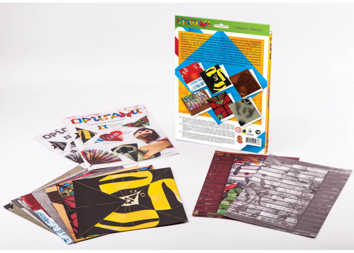 У набір входить кольоровий папір зі згинами для складання орігамі та інструкція.