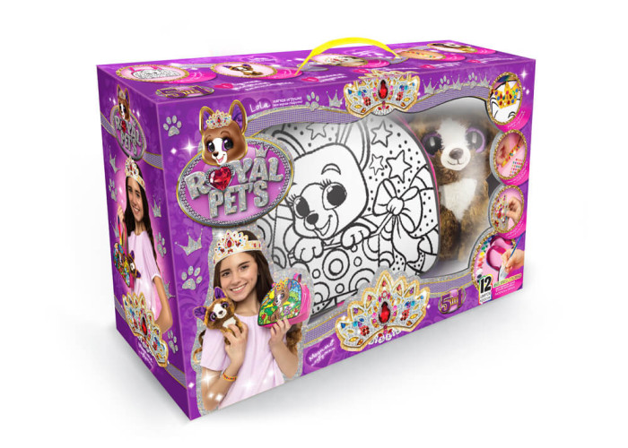 ROYAL PET'S - це не просто набір для дитячої творчості, а королівський подарунок для справжньої принцеси, який містить п'ять предметів: 1. Створи свій власний і неповторний стиль, прикрасивши дві сторони сумочки акриловими фарбами та декоруючи малюнок різнокольоровими кристалами. 2. Мила плюшева іграшка стане справжньою подружкою юної принцеси та вірним консультантом у світі моди. 3. Блискуча корона сяятиме і прикрашати юну леді. 4. Браслетик, декорується своїми руками, підкорить оточуючих своїм блиском і унікальним дизайном. 5. Ви будете виглядати дуже стильно і модно, завдяки королівським аксесуарам. Зроби нашийник для свого вихованця в стилі браслета. «ROYAL PET'S» - каприз юної принцеси!