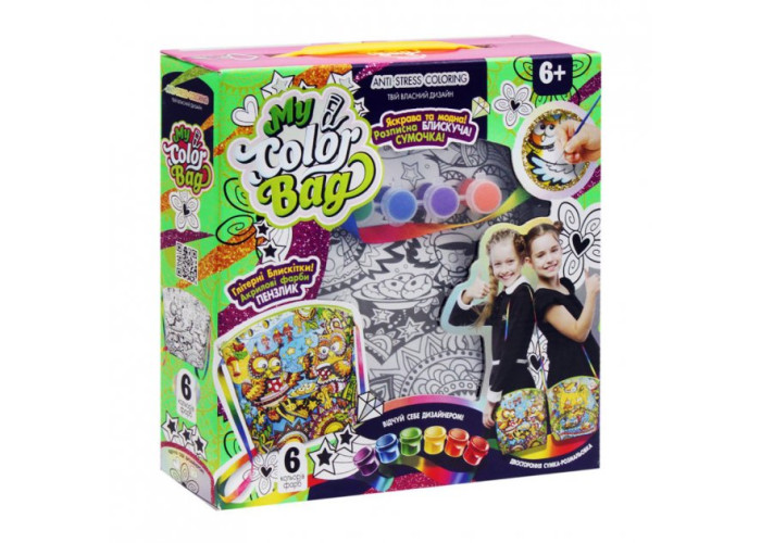 Розфарбовувати СУМКУ можна як показано на упаковці, або на свій розсуд. А додавши Глітер в акриловий ЛАК, Ви зможете декорувати будь-які зафарбовані елементи на малюнку, надаючи сяючий блиск свого творіння. Відчуйте себе дизайнером!