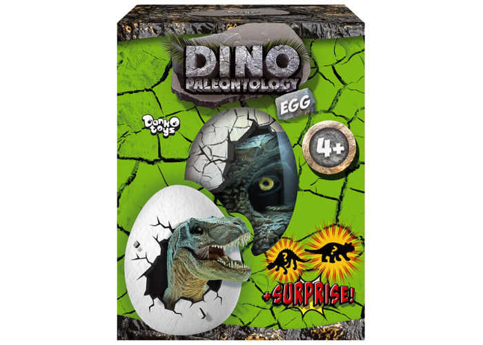Dino Paleontology Egg - набір для юних дослідників-палеонтологів, які вирішили присвятити вільний час пошукам та вивченню останків вимерлих гігантів нашої планети! У цій коробці знаходиться пласт скам'янілої земної породи зі справжніми модельками скелетів динозаврів, а також археологічний набір інструментів, необхідних для розкопок.