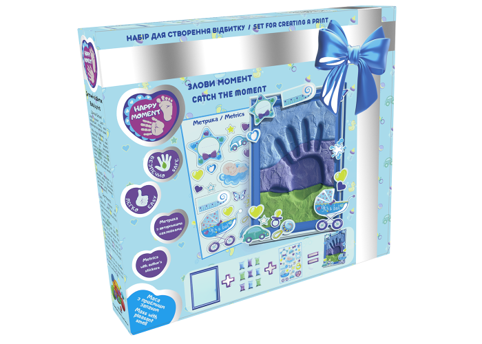Діти дуже швидко ростуть тож варто зберегти відбиток маленької ручки чи ніжки вашого малюка. Ми зможемо допомогти вам зупинити цікаву мить завдяки цьому чудовому набору для дитячої творчості. Впевнені що оформлення цієї рамки принесе неймовірне задоволення вам як батькам і ще довго тішитиме своїм поглядом.