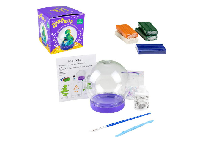Комплектація: шар-банка пластикова, пластилін, стек, гліцерин, блискітки, пензлик, інструкція.