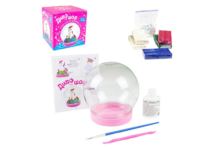 Комплектація: шар-банка пластикова, пластилін, стек, гліцерин, блискітки, пензлик, інструкція.