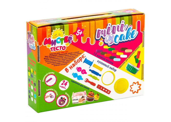 Ваш малюк любить тістечка та солодкі ласощі, і йому подобається пригощати ними друзів? Набір для творчості «Містер тісто - Mini Cake» допоможе дитині створити велику кількість різних видів тістечок і солодощів. Незвичайні і привабливі вироби допоможуть відтворити різні формочки, в тому числі і об'ємні 3D, кондитерський шприц і кухонне приладдя. Можна сфантазувати будь-який вид смачного частування і виліпити його зі спеціального тіста.