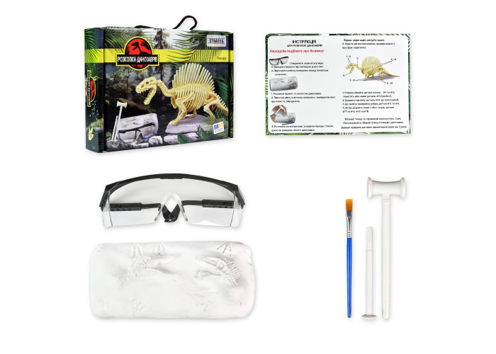 Набір для творчості "Розкопки динозавра. Спінозавр" — цікавий та захопливий набір для допитливих дослідників. У коробці ви знайдете необхідні інструменти, окляри для захисту, гіпсовий брикет зі скелетом мамонта та пояснення, як саме діяти. Може здатися, що археологи вже знайшли всі скам'янілості, але скажемо по секрету, що ми дещо зберегли. Нумо до нових відкриттів!