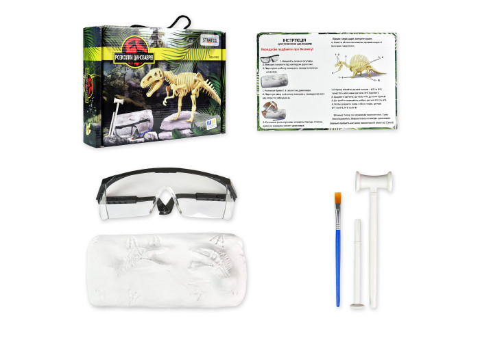 Набір для творчості "Розкопки динозавра. Тиранозавр" — цікавий та захопливий набір для допитливих дослідників. У коробці ви знайдете необхідні інструменти, окляри для захисту, гіпсовий брикет зі скелетом мамонта та пояснення, як саме діяти. Може здатися, що археологи вже знайшли всі скам'янілості, але скажемо по секрету, що ми дещо зберегли. Нумо до нових відкриттів!
