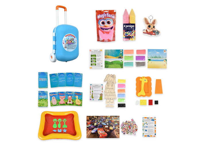 Набір для творчості "Подорож у творчість" — це яскрава валізка, яка зібрала найкраще для маленьких творців. Тут ви знайдете кінетичний пісочок з формами, крейду для малювання, пазли та ще багато цікавинок. Набір розвиває творчі навички, дрібну моторику рук, уяву та фантазію. З ним ваш малюк завжди гратиметься у задоволення. Усе необхідне зібране, вирушаймо у подорож!