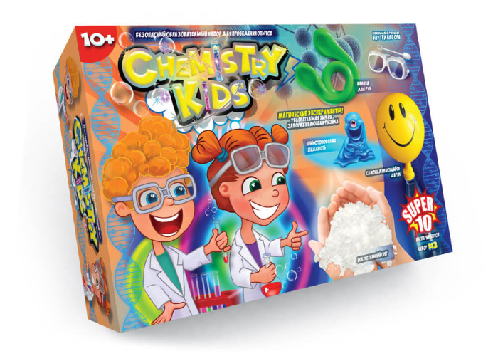 Настав час відкрити вам світ захоплюючої хімії, поділитися секретами чаруючої фізики і навчити вас тонкощам наукових експериментів. Ми звикли дивитися на світ навколо себе,щось пробуючи на дотик, отримуючи інформацію, яку бачать наші очі, чують вуха. А як все влаштовано насправді Даний набір не тільки познайомить вас з різними видами захоплюючих хімічних експериментів та фізичних явищ, що зачаровують своїми ефектами, але й пояснить їхню суть. А допоможе Вам у цьому докладна інструкція та необхідний реквізит, який знаходиться усередині коробки. І хто знає, можливо саме Ви зробите дивовижне наукове відкриття, а захоплюватися наукою почнете з набору "Chemistry Kids!"