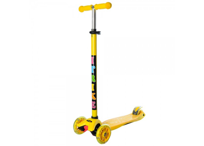 Самокат допоможе весело провести час і провести час з радістю, посприяє розвитку координації рухів і вміння тримати рівновагу. Поворот коліс в скутері здійснюється нахилом рульової рейки в сторону повороту. Така система управління більш зрозуміла для маленьких дітей. Скутер оснащений колесами з підсвічуванням і ножними гальмами, які розміщено над заднім колесом.