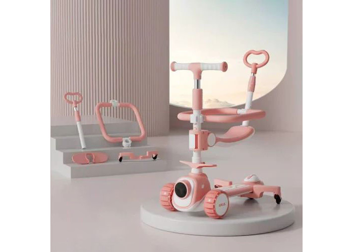 - Многофункціональність 5 в 1: Цей дитячий самокат розроблений, щоб рости разом з вашим малюком. Ви зможете використовувати його в різних режимах, починаючи з перших кроків і до моменту, коли ваша дитина впевнено кататиметься на самокаті.