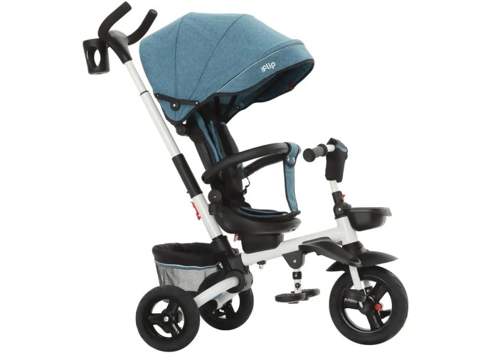 Швидкозбірна модель триколісного велосипеда з батьківською ручкою та великим капюшоном, з неповоротним сидінням. Велосипед триколісний має страхувальний бампер із захистом від зісковзування, а також ремінь безпеки, ззаду встановлені гальма, а також багажний кошик.