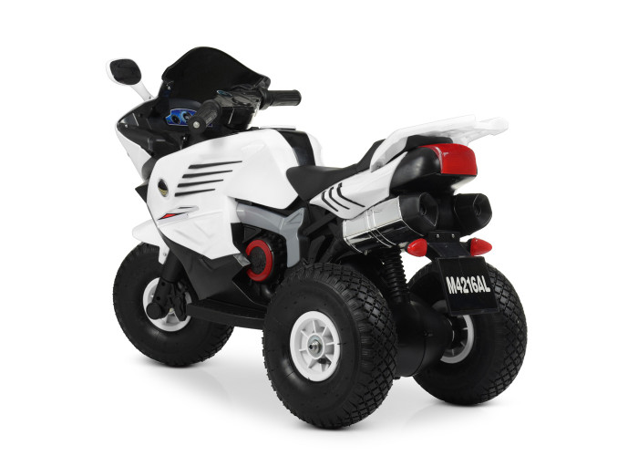 Дитячий мотоцикл M 4216 AL-1, надувні колеса, білий - має стійку конструкцію, це дозволяє кататися на такому мотоциклі навіть початківцям, на борту у байка якісна батарея та два мотори великої потужності, мотоцикл має стильні фари, які яскраво світяться у темряві. Дитячий мотоцикл M 4216 AL-1 стане чудовим подарунком для дитини, яка мріє про власний мотоцикл, кататися на ньому дуже цікаво, спереду на панелі є програвач для прослуховування музики, що ще більше підніме настрій малюку. Дитячий мотоцикл M 4216 AL-1 базується на надувних гумових колесах, які відмінно пом'якшують і амортизують нерівності дороги, роблячи їзду комфортною, дана модель оснащена м'яким шкіряним сидінням, а корпус зроблений із міцного пластику.