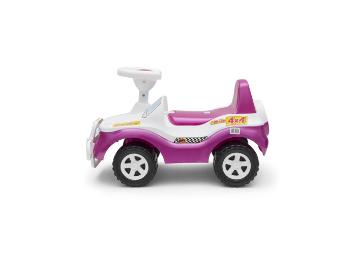Іграшка має 4 колеса з декоративними ковпаками і складається з шасі, корпусу, на якому закріплюється відкидне сидіння. У передній частині шасі закріплений бампер, який одночасно є упором, який попереджає переворот машинки вперед. У задній частині шасі встановлена задня пара коліс і упор, що попереджає перекидання машинки назад. Рульова колонка, що несе передню пару коліс, проходить через шасі і корпус. На рульову колонку зверху встановлюється кермо, що дозволяє повертати колеса. У корпус керма вмонтований механічний (арт.105) або електричний (арт.096) звуковий сигнал. Колеса виготовляються видувним методом з поліетилену, інші деталі - методом лиття з поліпропілену. Максимально допустиме навантаження - «20 кг»