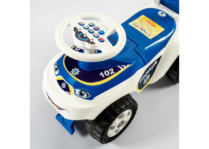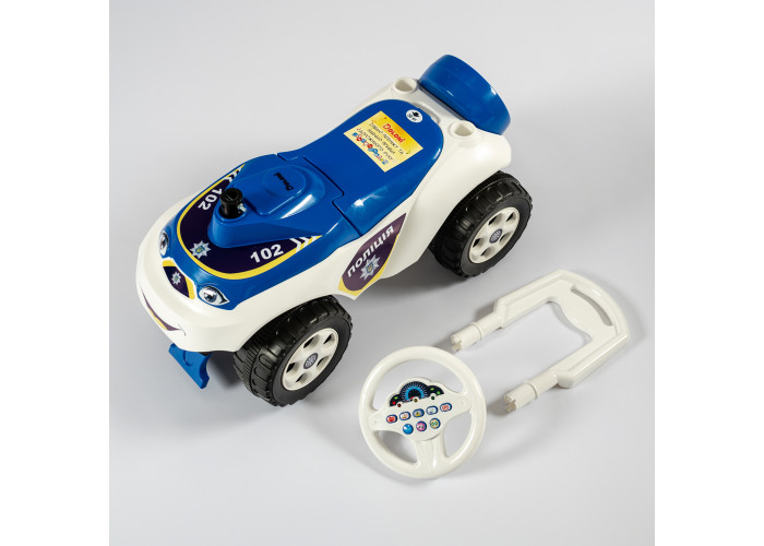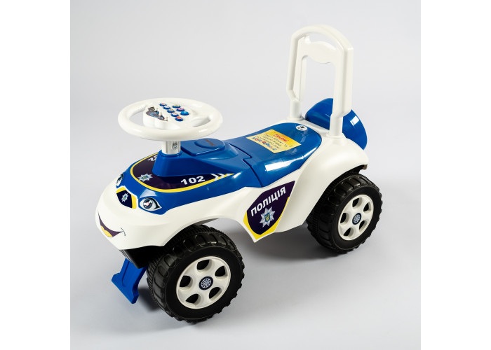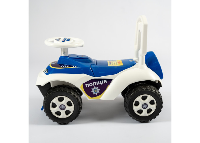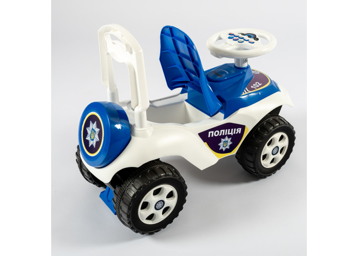 Автомобіль-каталка для пустотливих діточок, які люблять грати на свіжому повітрі. Яскравий дизайн та забарвлення робить іграшку привабливою для дитини! У задній частині навіть створено імітацію запасного колеса. Автомобіль каталка виготовлений і міцного та абсолютно безпечного пластику, конструкція стійко стоїть на землі. Широкі колеса надають стійкості машинці, а передній та задній упори не дадуть дитині перевернутись.