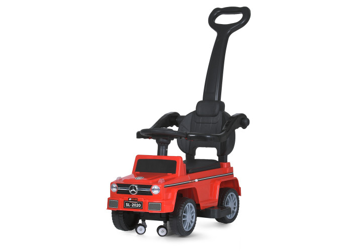 Дитяча каталка-толокар Mercedes, з батьківською ручкою - має батьківську ручку за її допомогою мама зможе катати на машині малюків, також толокар обладнаний страхувальним бампером, який убереже дитину від падіння, внизу з боків розташовані підставки для ніжок. Каталка-толокар має м'яке шкіряне сидіння, що забезпечує малюку максимально комфортну поїздку, корпус іграшки зроблений з міцного пластику, що дозволяє витримувати вагу дитини. Дитячий толокар - це стильний, якісний, зручний і надійний толокар, який зможе забезпечити вашій дитині веселе та цікаве проведення часу, дана модель забезпечена світловими та звуковими ефектами, вони розважатимуть малюка під час прогулянки.