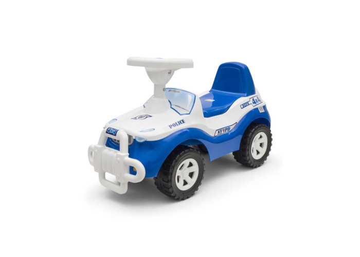 Іграшка має 4 колеса з декоративними ковпаками і складається з шасі, корпусу, на якому закріплюється відкидне сидіння. У передній частині шасі закріплений бампер, який одночасно є упором, який попереджає переворот машинки вперед. У задній частині шасі встановлена задня пара коліс і упор, що попереджає перекидання машинки назад. Рульова колонка, що несе передню пару коліс, проходить через шасі і корпус. На рульову колонку зверху встановлюється кермо, що дозволяє повертати колеса. У корпус керма вмонтований механічний (арт.105) або електричний (арт.096) звуковий сигнал. Колеса виготовляються видувним методом з поліетилену, інші деталі - методом лиття з поліпропілену. Максимально допустиме навантаження - «20 кг»
