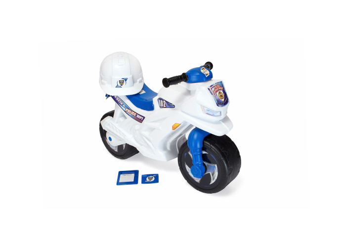 Двоколісний дитячий толокар мотоцикл з каскою спеціально виготовлений для юних поліцейських – безстрашних і відважних підкорювачів трас. Кожна дитина мріє про таке диво-мотоцикл, який приваблює його своїм зовнішнім виглядом. На такому дитячому байку можна регулювати рух у дворі, зупиняти порушників і складати протокол. Малюк може з самого дитинства вивчати правила дорожнього руху, навчатися навичкам водіння. Завдяки прогумованим колесам, каталка при управлінні не видає багато шуму. У комплектації передбачений шолом, для безпечної і швидкої їзди. Модель розрахована на дітей дошкільного віку.
