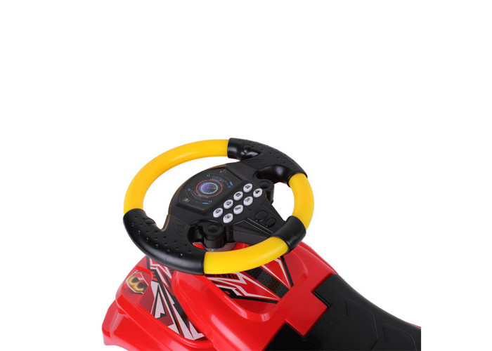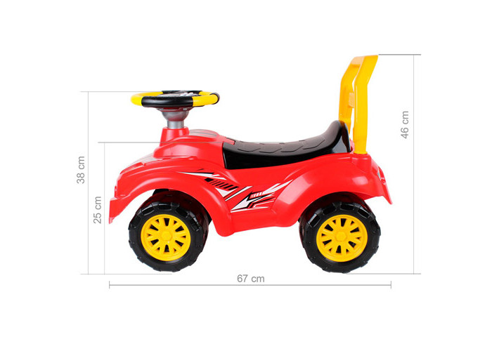 Яскраві кольори, "круті" наліпки, ергономічний дизайн, захопливі звуки та сигнали неодмінно привернуть увагу малечі до іграшки. А нове електронне кермо принесе море радості Вашим малюкам під час катання на автомобілі. Вісім кнопок – це вісім різноманітних сигналів: запуск двигуна, різке гальмування, екстрені служби поліції, швидкої та пожежної допомоги, попереджувальний «фа-фа» і весела музика. Автомобіль надійний, міцний, практичний та зручний. Для перевезення всіх необхідних речей розроблено великий багажний відсік під сидінням .