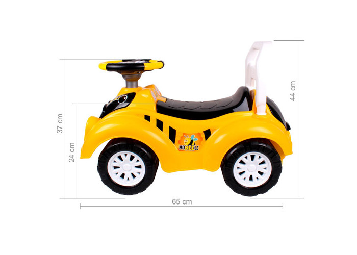 Яскравий оригінальний дизайн «бджілка» неодмінно сподобається хлопчикам та дівчаткам. Функціонал іграшкового автомобіля, як справжнього: у багажнику можна перевозити покупки, а піднявши кришку капота, заглянути у моторний відсік.