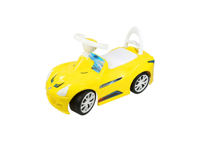 Толокар виглядає як справжній спортивний болід, тільки менших розмірів. Габарити каталки складають 690x270x380 мм, що дуже зручно для зберігання машинки в квартирі. Дана модель призначена для дітей дошкільного віку, виготовлена в декількох колірних рішеннях. Якщо ви хочете прищепити любов до транспорту з самого дитинства, навчити малюка навичкам водіння і вивчити правила дорожнього руху, то модель «Спорт-кар» буде правильним вибором. Машинка-каталка виготовлена з міцного пластику, що володіє стійкістю до ударів і зносостійкістю. Ігрушка на колесах для катання дітей, довжина - 670 мм, ширина - 270 мм, висота - 380 мм, маса - 2,34 кг, висота сидіння - 230 мм, споживча упаковка - пакет з плівки ПВХ.Ігрушка має 4 колеса з декоративними ковпаками і складається з корпусу, на якому закріплюється сидіння, спереді- фари, а ззаду - спинка. Сидіння відкидається, під сидінням є вантажний відсік. Машинка двовісна, задня пара коліс на осі закріплюється на корпусі, а передня пара коліс зібрана на підвісці, яка встановлюється на рульову колонку. За допомогою керма передня пара коліс повертається навколо вертикальної осі. Машинка має кермо з механічним або електро-звуковим сигналом. Всі деталі виготовляються методом лиття під тиском з поліпропілену.