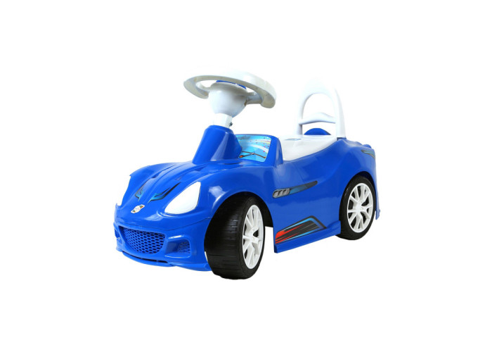 Толокар виглядає як справжній спортивний болід, тільки менших розмірів. Габарити каталки складають 690x270x380 мм, що дуже зручно для зберігання машинки в квартирі. Дана модель призначена для дітей дошкільного віку, виготовлена в декількох колірних рішеннях. Якщо ви хочете прищепити любов до транспорту з самого дитинства, навчити малюка навичкам водіння і вивчити правила дорожнього руху, то модель «Спорт-кар» буде правильним вибором. Машинка-каталка виготовлена з міцного пластику, що володіє стійкістю до ударів і зносостійкістю. Ігрушка на колесах для катання дітей, довжина - 670 мм, ширина - 270 мм, висота - 380 мм, маса - 2,34 кг, висота сидіння - 230 мм, споживча упаковка - пакет з плівки ПВХ.Ігрушка має 4 колеса з декоративними ковпаками і складається з корпусу, на якому закріплюється сидіння, спереді- фари, а ззаду - спинка. Сидіння відкидається, під сидінням є вантажний відсік. Машинка двовісна, задня пара коліс на осі закріплюється на корпусі, а передня пара коліс зібрана на підвісці, яка встановлюється на рульову колонку. За допомогою керма передня пара коліс повертається навколо вертикальної осі. Машинка має кермо з механічним або електро-звуковим сигналом. Всі деталі виготовляються методом лиття під тиском з поліпропілену.