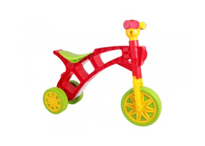Яскравий та кольоровий прогулянковий ролоцикл стане першим самостійним транспортним засобом малюка. Виконаний у стилістиці техно-байка та пофарбований у яскраві контрастні кольори. Пересуватися на ньому дуже легко – просто відштовхуватись ногами від поверхні. Поворотне переднє колесо з кермом, ергономічне сидіння, два задніх колеса для стійкості. На кермі велика кнопка сигналу-бібікалки. Жорсткі колеса дозволяють кататися по рівній поверхні і в приміщенні, і на вулиці. Максимальна вага навантаження – до 20 кг. Виконаний із удароміцного пластику.