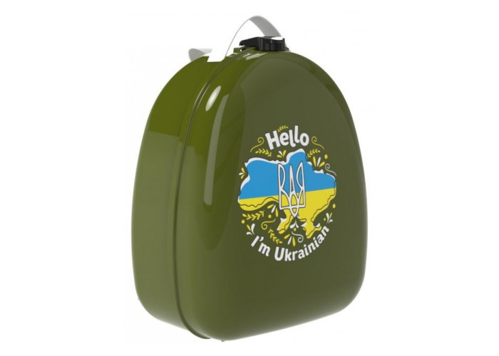 Рюкзаки з патріотичною наліпкою "Hello, I'm Ukrainian", в двох кольорових варіантах: хакі та синьо-жовтий.