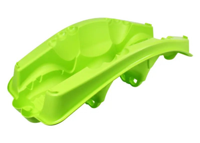 - Гойдалка виконана у вигляді своєрідного крокодила і пофарбована в салатовий колір, завдяки чому вона підходить і для хлопчиків, і для дівчаток.