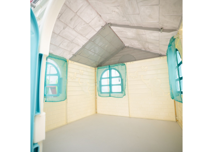 У цього будиночка є дверці і вікна, а на вікнах справжні шторки, для ще більшого комфорту дитини. Ваш малюк може відчути себе хазяїном цього будинку, розставляючи там свої меблі і граючи з іграшками.