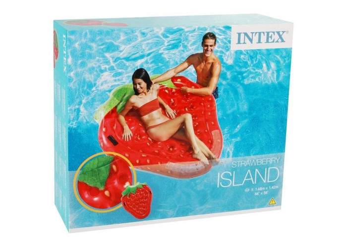 Новинка 2019 р. матрац-плотик Полуниця. Для зручності плавання, з боків є дві ручки-утримувача. Надувний пліт (матрац) в вигляді Полуниці зробить відпочинок на воді більш радісним і незабутнім. Взявши його на море, ви будете виділятися від оточуючих оригінальністю і ексклюзивністю. Intex STRAWBERRY ISLAND виглядає дуже реалістично і апетитно.