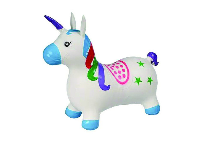 Яскрава надувна іграшка зроблена з дуже міцного та товстого полімерного матеріалу, призначена для дітей від 1.5 до 6 років. М'яч стрибун єдиноріг — це чудова іграшка для активних ігор. На ній можна стрибати та скакати, заряджати або просто весело грати. Іграшка стрибун розвиває м'язи спини та ніг, крім того, у дитини покращується координація руху та почуття рівноваги. Чудовий подарунок для дитини. За допомогою зручних довгих вушок єдинорога малюк зможе міцно утримуватися на іграшці під час стрибків. Така надувна гумова іграшка стрибун обов'язково сподобається вашій дитині. Заняття на іграшках-стрибунах сприяють загальному фізичному розвитку, удосконалюють координацію рухів, зміцнюють м'язи (що особливо важливо під час корекції постави в дітей). Іграшки-стрибуни тварини надуваються звичайним насосом відповідно до зросту дитини
