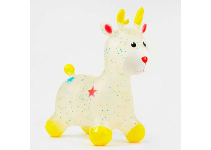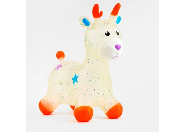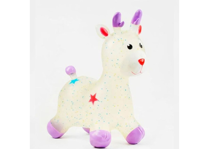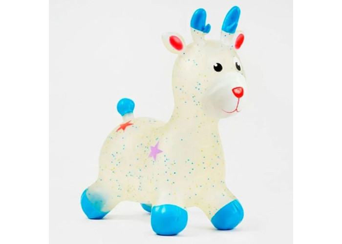 Яскрава надувна іграшка зроблена з дуже міцного та товстого полімерного матеріалу, призначена для дітей від 1.5 до 6 років. М'яч стрибун — це чудова іграшка для активних ігор. На ній можна стрибати та скакати, або просто весело грати. Іграшка стрибун розвиває м'язи спини та ніг, крім того, у дитини покращується координація руху та почуття рівноваги. Чудовий подарунок для дитини. За допомогою зручних довгих вушок та ріжок, малюк зможе міцно утримуватися на іграшці під час стрибків. Така надувна гумова іграшка стрибун обов'язково сподобається вашій дитині. Заняття на іграшках-стрибунах сприяють загальному фізичному розвитку, удосконалюють координацію рухів, зміцнюють м'язи (що особливо важливо під час корекції постави в дітей). Іграшки-стрибуни тварини надуваються звичайним насосом відповідно до зросту дитини