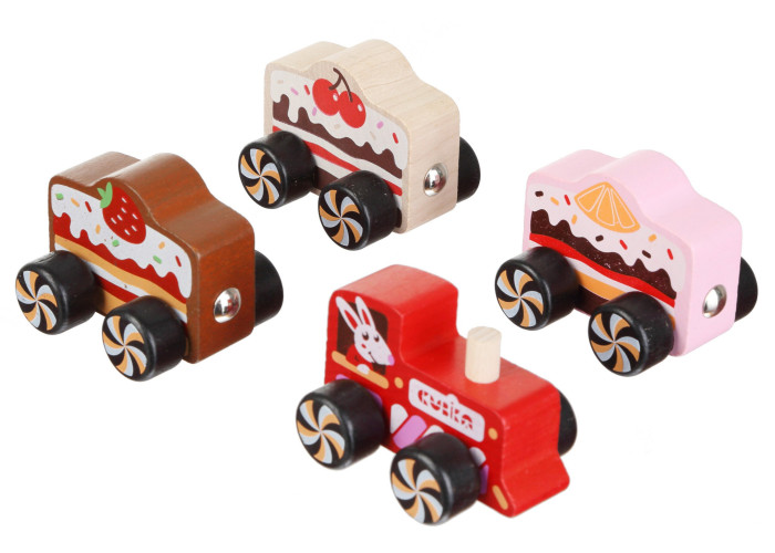 4 деревянных машинки на магнитах