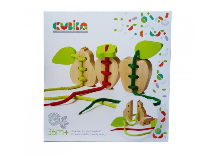 Дерев'яна іграшка розвиваюча гра-шнурівка Фрукти від виробника Cubika