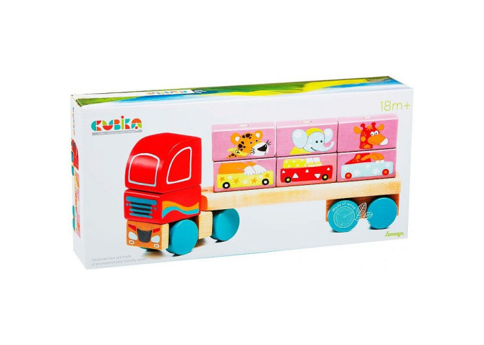 Дерев'яна іграшка Тягач з кубиками LM-14 12 деталей від виробника Cubika