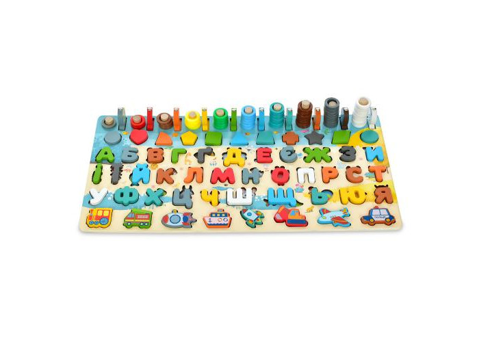 Дерев'яна іграшка, спрямована на всебічний ранній розвиток малюків. Ця логічна іграшка познайомить дитину з цифрами, тваринами та кольорами. Крім того, дитині потрібно буде знайти для кожної фігурки місце.