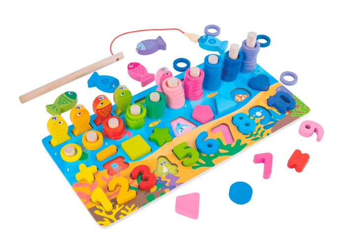 Магнітна рибальство: В комплекті є 10 магнітних рибок та вудочка, які допомагають дітям розвивати моторику та увагу, ловлячи рибок.