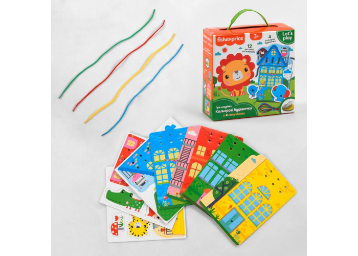 Захоплююча гра-шнурівка «Кольорові будиночки» - відмінна розвиваюча іграшка для малишейв віці 3-4 років.