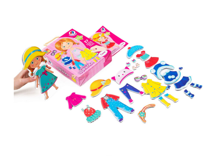 Комплектація: лялька, 27 магнітних одежинок, книжечка-інструкція.