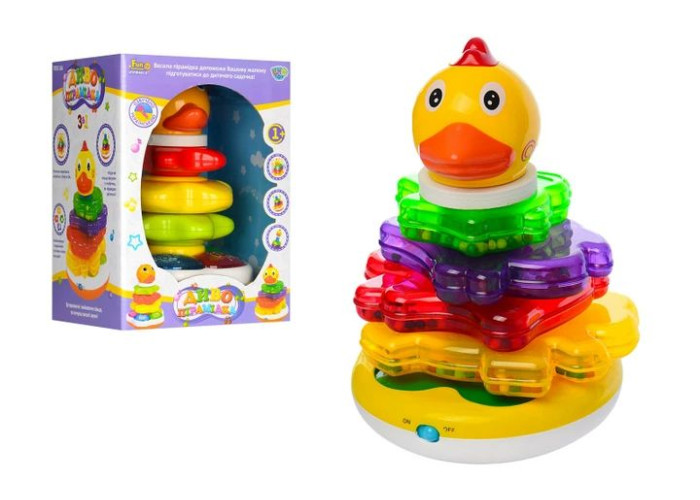 Піраміда-неваляшка - розвиваюча музична іграшка зі світловими і звуковими ефектами. Пірамідка складається з стержня з округлою підставкою, у пірамідки - курчати чотири різнокольорових фігурки тварин (кролик, щеня, теля і слоненя) і верхівка - фігурка у вигляді голови курчати. Кожну фігурку тварини можна використовувати як іграшку-брязкальце - всередині гримлять маленькі кульки. Нанизування фігурок на стрижень супроводжується світловими і звуковими ефектами. При легкому натисканні на голову курчати звучить кудкудакання, а потім грає весела мелодія.