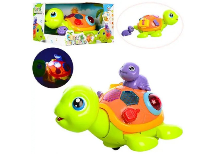 Черепаха 21 см та маленька черепашка 7 см, з музикою, світлом, на колесиках. Працює на батарейках (у комплект не входять). Іграшкова черепашка чудова іграшка для вашої дитини. Від такого функціонального іграшкового друга будь-яка дитина буде у захваті.