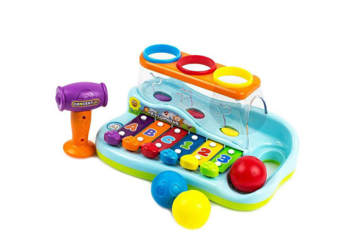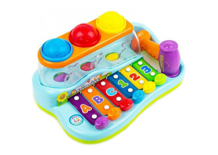 Хочете щоб навчання і розвиток малюка проходило швидше? Тоді іграшка ксилофон, як раз те що потрібно! Іграшкові музичні інструменти це перші кроки до прищеплювання у малюка любові до музики. З найперших місяців такі ігри допомагають формуванню мови, розвитку центральної нервової системи і м'язового апарату, сприяють емоційному мисленню, художньому, логічному розвитку, допомагають в навчанні. У музичних дітей набагато більший словниковий запас, краще логічне мислення і увага. Граючи з іграшковими музичними інструментами дитина тренує не тільки творчий навик, але і корисний гармонуючий фактор, що дозволяє всебічному розвитку дитини від інтелектуального до фізичного. Іграшка ксилофон яскрава, якісна, з різнокольоровими кнопочками і знімними детальками. У грі, дитина самостійно або з дорослим сортує за кольором кульки, забиває їх, стукає по дзвінким ноткам або натискає кнопочки пальчиками. Кожна клавіша з'єднана з пластиною, яка видає звуки. Діткам подобається тримати в ручках молоточок і сортувати кульки, а звукові ефекти привернуть увагу малюка.Всі елементи зроблені з нетоксичних матеріалів, не містять фталатів.
