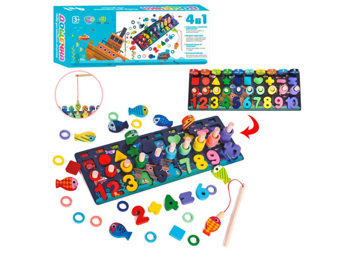 Ігровий центр розвиваючий дерев'яний рибалка,фігурки,цифри, букви